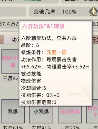 第五层:元婴-道经补天、梵圣真魔+任意主修自创(这里的自创是为了顶掉之前的低阶主修,到元婴了低阶主修在战斗时完全是负面提升)。版本之子吸血属性+跨境界buff技能,这俩buff套上a都能a死天劫。![[TapFamily_爱了]](https://img.tapimg.com/market/images/bec74199d492d5d2ad12c434aac536aa.gif)