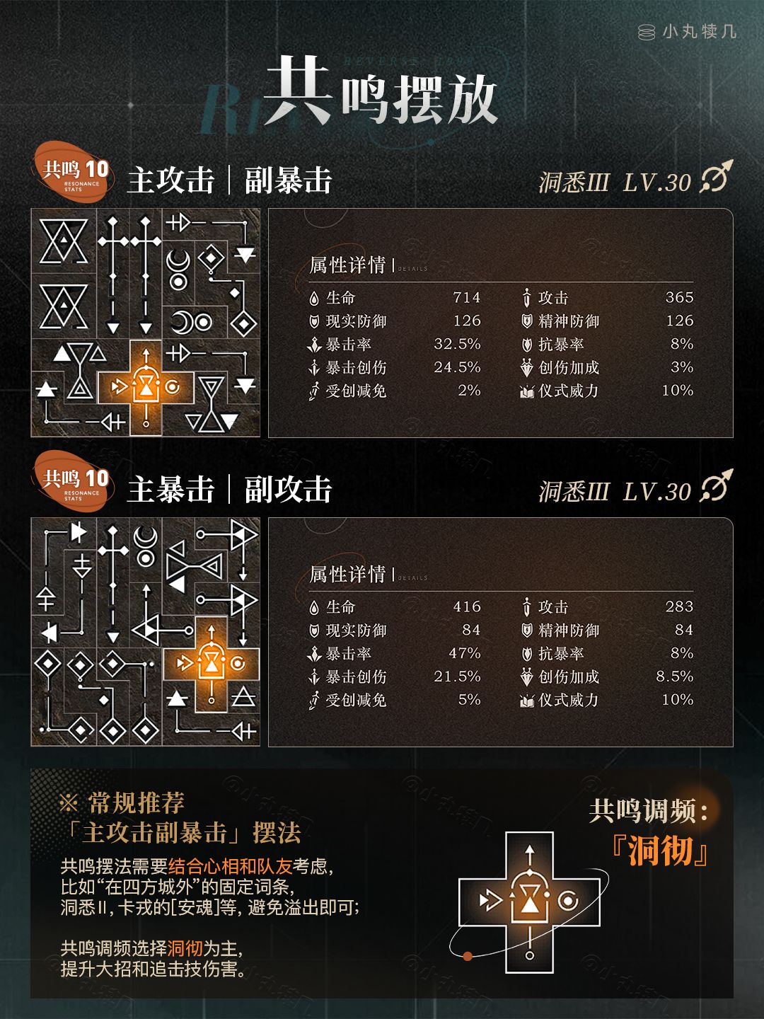 ※共鸣10『主暴击副攻击』摆法: