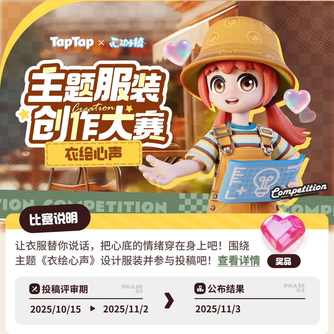 参与投票与投稿的其他奖项现已开奖!因本次活动稿件众多,我们决定延长公示时间。开奖公示时间为11月24日~10月28日,获奖作品在公示期若核实为抄袭等违规作品,将直接取消作品获奖资格。公示结束后,现金奖励将通过TapTap创作者中心进行发放,请注意查收!