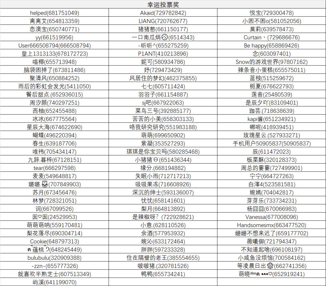 幸运投票奖获得玩家: