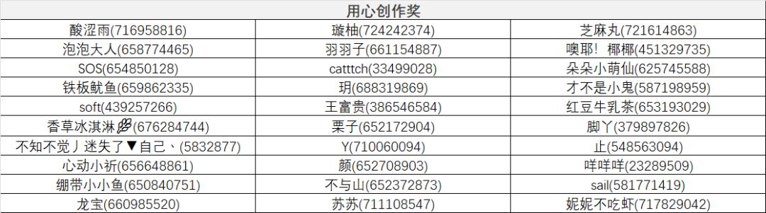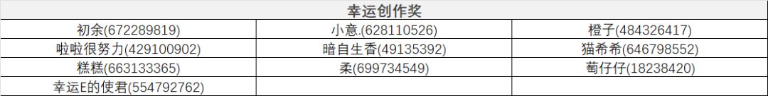 用心创作奖:我们在前20名之外,综合稿件数据和主题契合程度,评选一下玩家玩家获奖