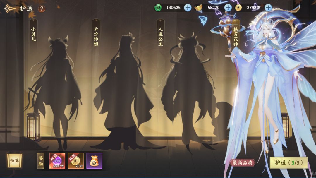 2.可以通过消耗护送信物刷新护送美人的品质,美人品质越高,获得的奖