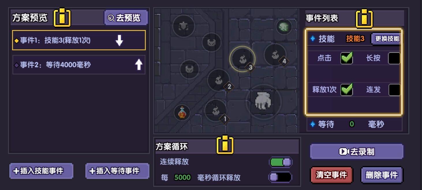 上面的一键连招,三技能绑定橙技能也可以紫技能也可以,不考虑其他buff的情况下橙:紫伤害是9*2:7这样,橙色容错会高一点。
