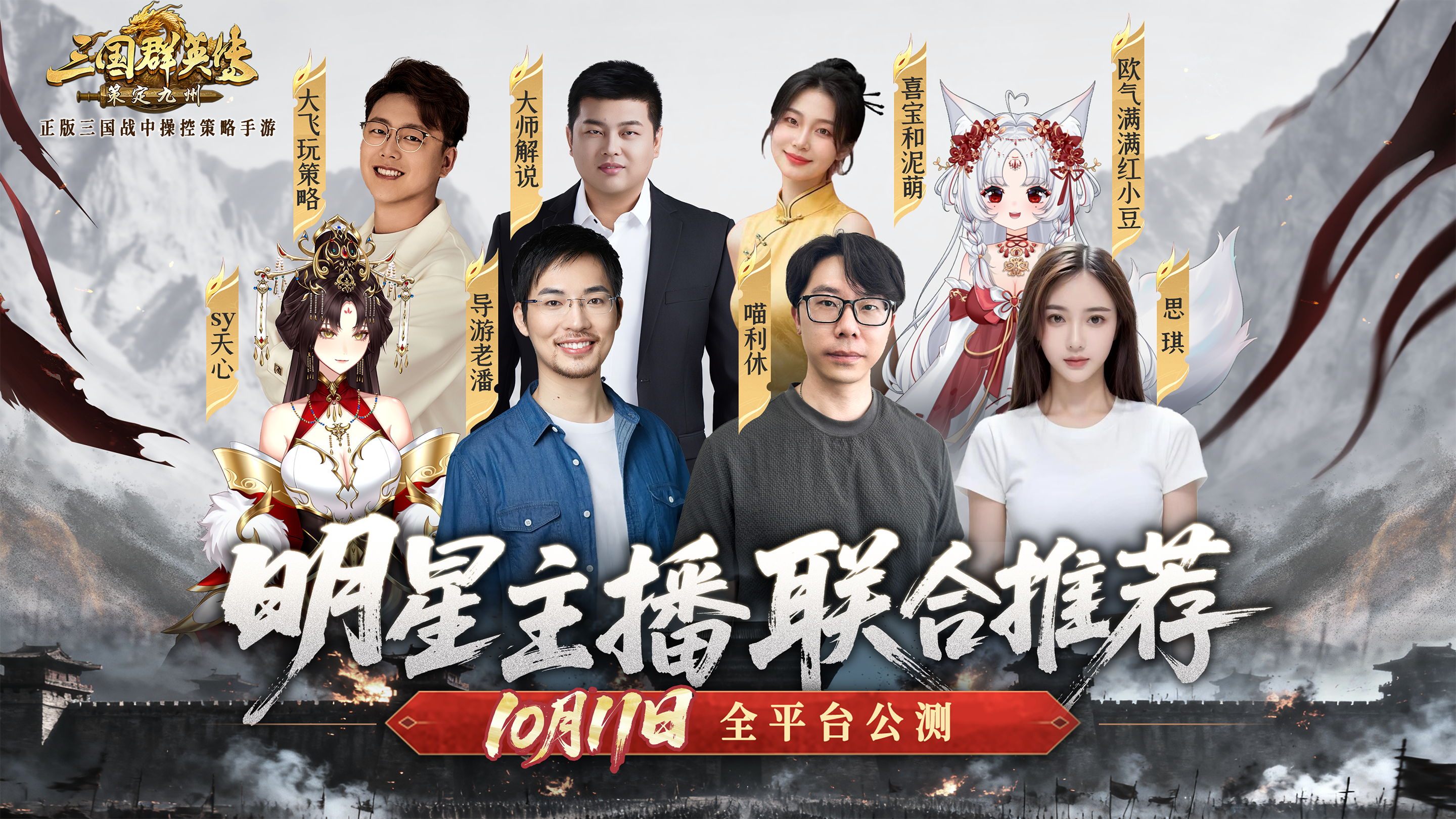 公测在即,喵利休、导游老潘、欧气满满红小豆、sy天心、思琪等SLG明星主播,已与内测老玩家齐聚九州!他们将分享独家心得,与你一起迎战10月11日!