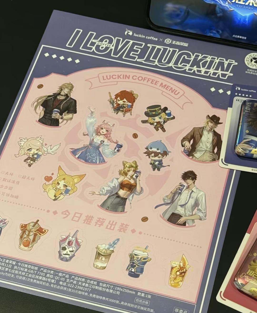 根据官方预告,此次联动将推出多款主题周边主要有贴纸,扇子,挂件,标签,吧唧,保温杯等周边,玩家可通过购买联名套餐获取,同时也将推出多款新的饮品,据说新饮品有点难评,具体的可以看图2的一图流,总之还是很期待这次王者荣耀与瑞幸咖啡滴联动的