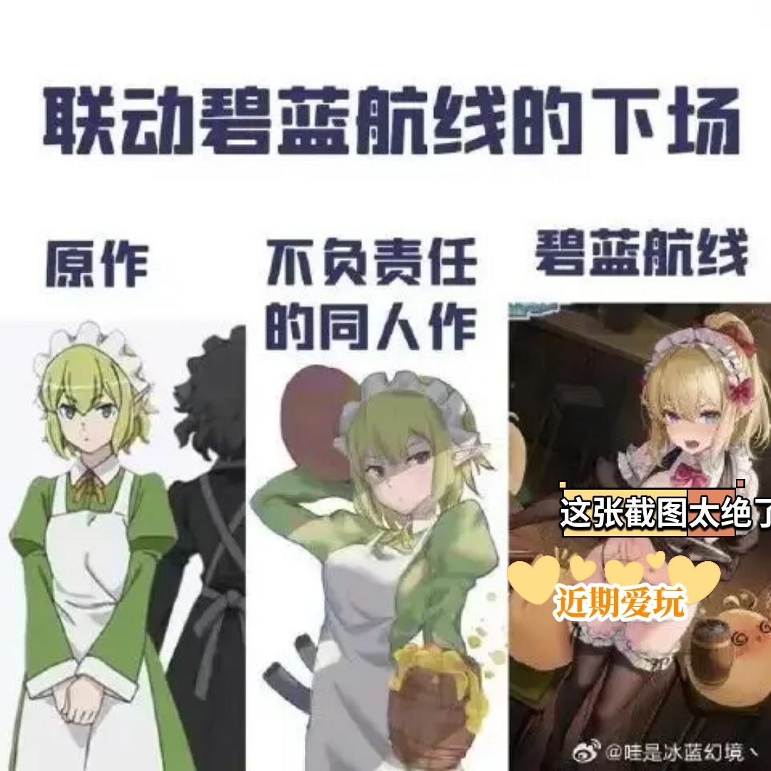 相关图片与原图进行对比,并配以 玩碧蓝的下场 文字