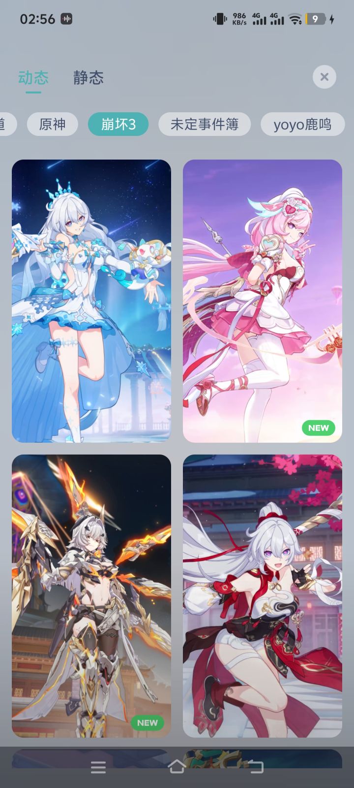 崩三和崩铁都是最近几个版本的角色壁纸,原神还是在枫丹和须弥时期的壁纸,都有一两个大版本没出了