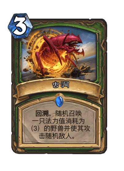 回溯。随机召唤一只法力值消耗为(3)的野兽,使其随机攻击一个敌人