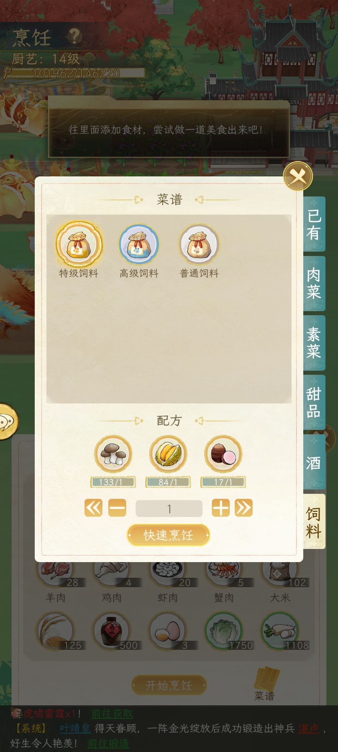 另外种菜种特级饲料,绝对比直接银子买便宜啊,因为浇水给2个金坷垃给5个,一个种子出17个产物,只要不是临时急需,我还是推荐种菜。
