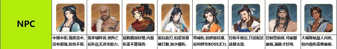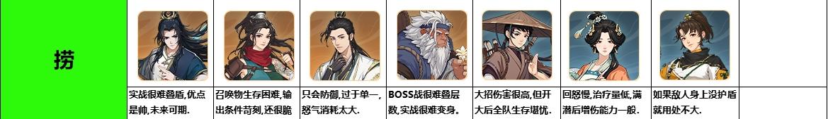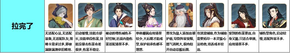 这些就属于中规中矩了,特定阵容比较强,但机制不够完善,不能适配各种情况。大部分是属于输在了是内劲伤害(小刀、褚万钧),面对护盾无法反制,否则强度能高出不少,等内劲伤害增强吧。