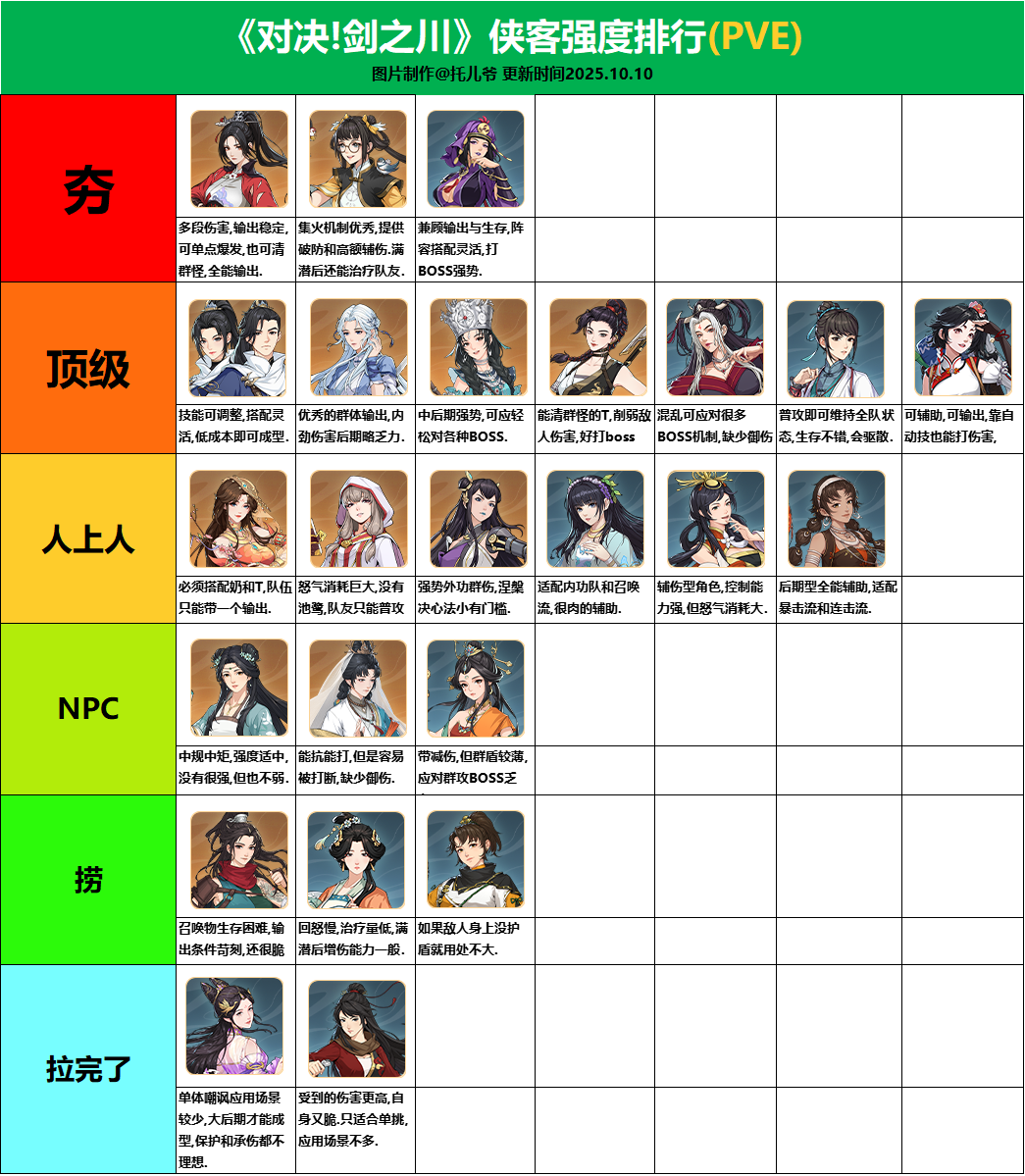 剑之川的强度排名来了,快来看看你喜欢的角色强度怎么样!
