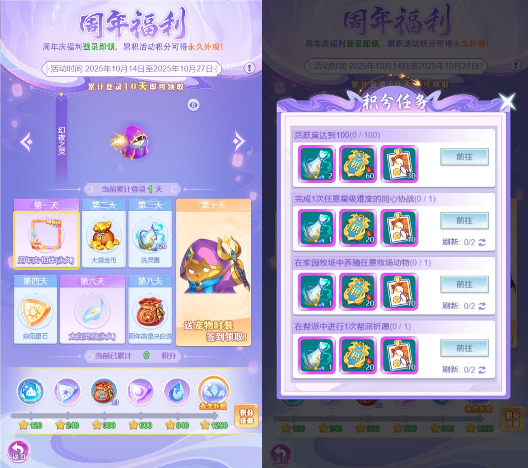 嘻嘻,以上的周年福利怎么样?少主们是不是可想把时间拨快,赶紧快进到周年庆领取好礼了呢?!周年福利登录即领,累积活动积分可得永久外观,少主们可千万不要错过鸭~~!