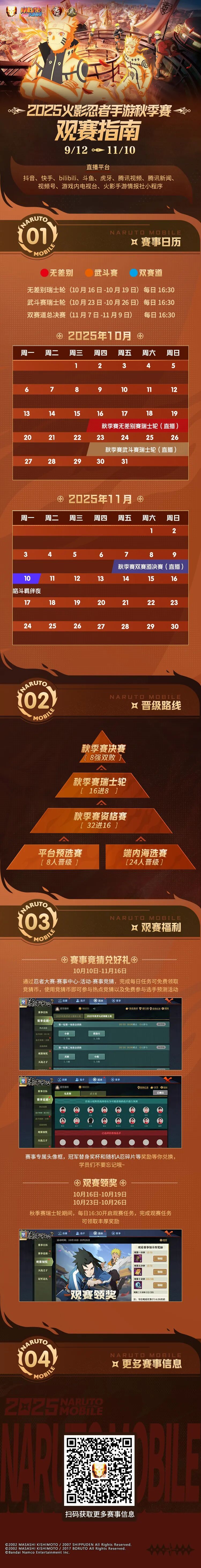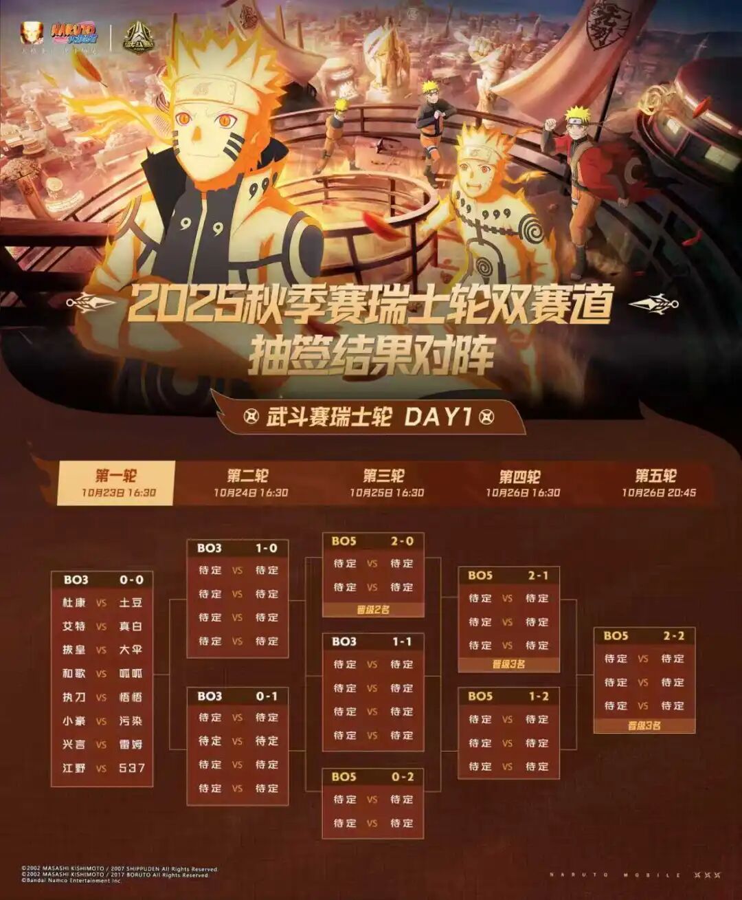 随着2025《火影忍者》手游秋季赛资格赛的落幕,瑞士轮双赛道比赛即将开赛!其中无差别瑞士轮将在10月16日-10月19日开赛,武斗赛瑞士轮则在10月23日-10月26日开赛。最终闯入双赛道总决赛的选手,将在11月7日-11月9日全力角逐冠军奖杯!比赛期间当然少不了赛事福利~学员在游戏内完成赛事指定任务,还有赛事专属头像框、冠军替身奖杯和随机A忍碎片等丰厚奖励等你领取哦!
