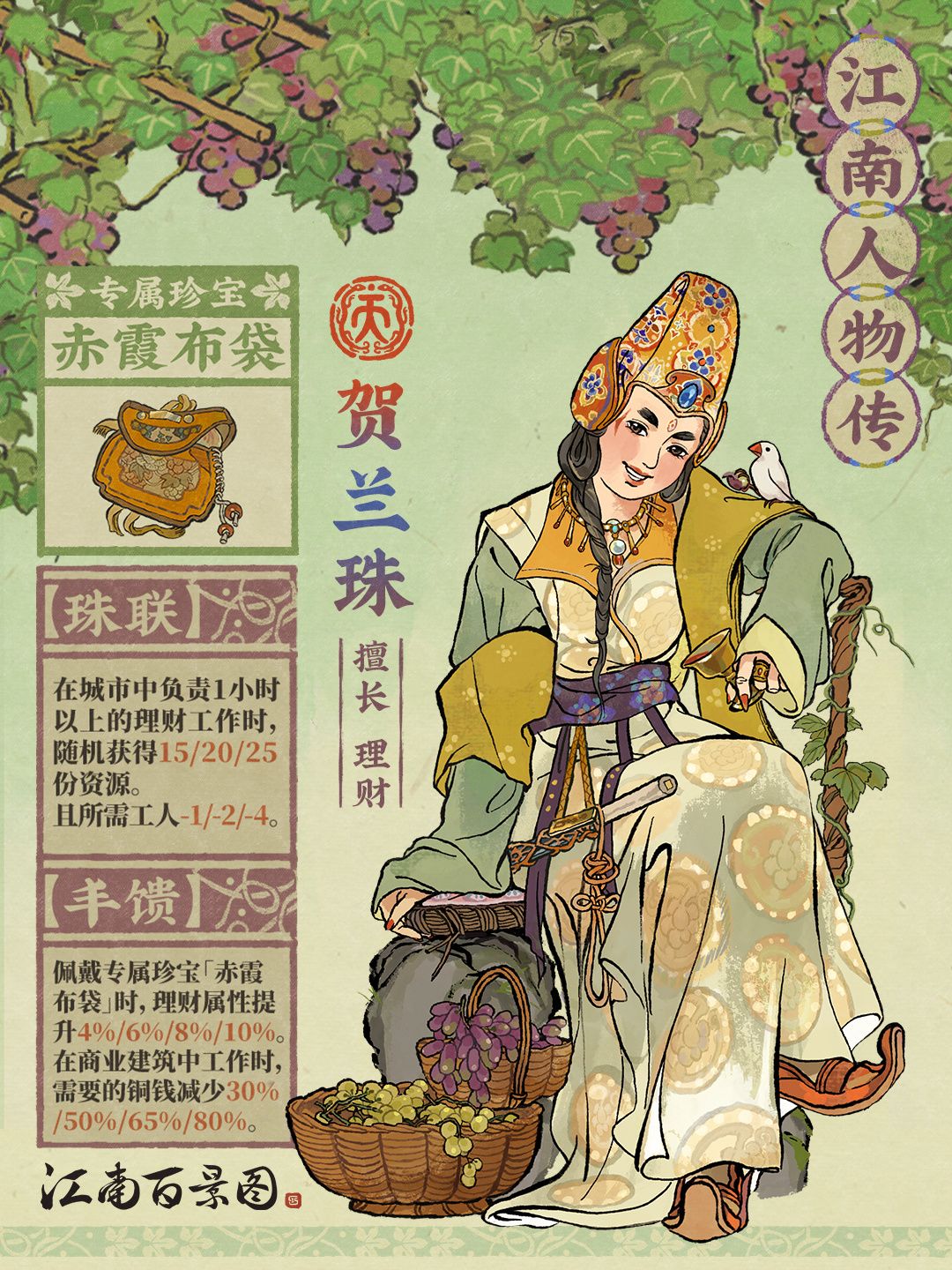 #江南百景图 全新天级人物「贺兰珠」10月3日起入驻「琼浆·保底画池」,大人现可前往执笔绘画,邀请她入画大人的治下江南!