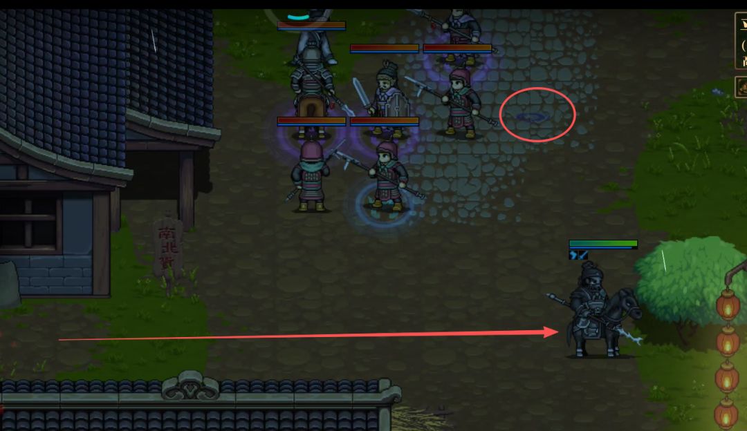 过关攻略2:如果没有吕布操作会更复杂一些,除了吕布,其他人从②跑不到③,那么⑤会出伏兵。这时候奶回归张飞,且抗⑤的伏兵,张飞往下跑,从下路往大门跑。