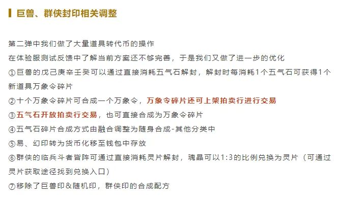 我们希望可以通过这个方案,解决印的负重问题,维稳市场定价,同时也保留大家好评的万象令碎片的设计。