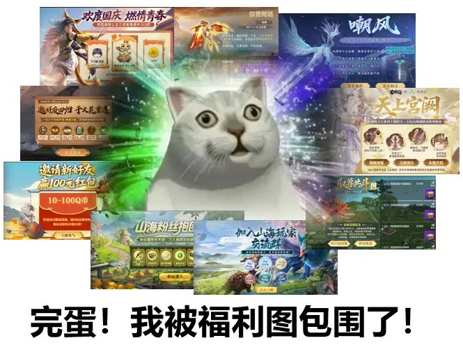 而山海的福利图目前信息也非常庞杂,特别是遇到大版本更新,多个活动一起上线时,打开福利图界面很容易被海量的信息贴脸冲击,以至于找不到重点。