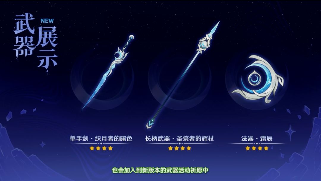 奈芙尔的配套武器及3把挪德卡莱风格的四星武器将会在武器池登场。