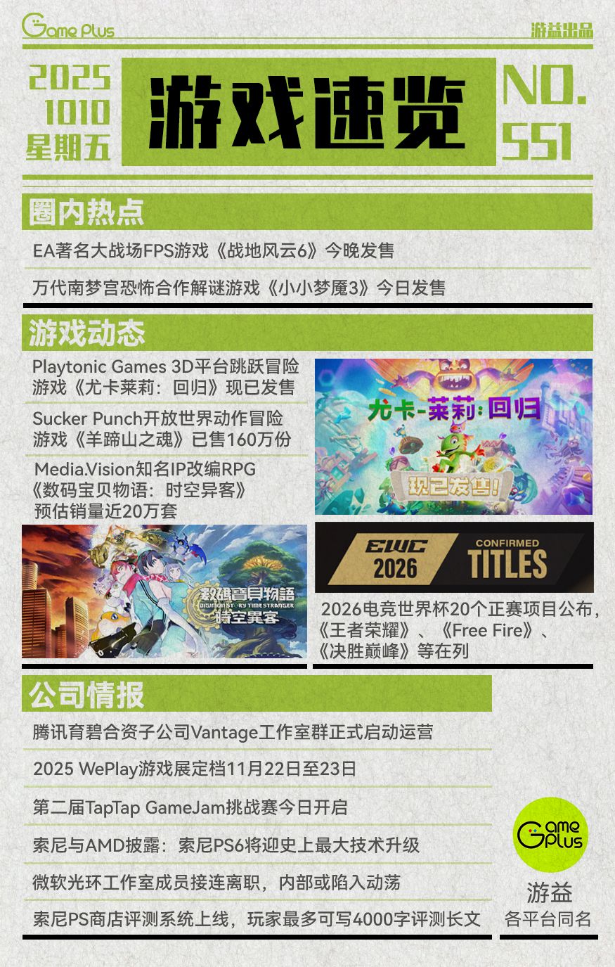1.腾讯育碧合资子公司Vantage工作室群正式启动运营