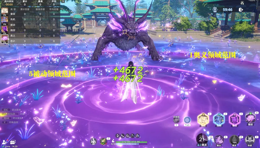 通过上图对比我们技能发现,相较于5被动的领域而言,这个1奥义召唤出来的领域就要大很多了,那么实战后又是个什么感觉呢?维一简单描述一下便是,5被动的这个领域范围相当于白虎一次普攻后的正常位移可能就会脱离这个范围了,而1奥义的领域范围则基本上可以囊括我们打桩时的正常位移范围,在非敌人移动的前提下基本上不会跳出这个1奥义的这个范围。