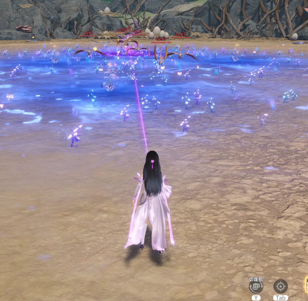那么如上图所示,这个战斗场景里所演示的距离便是接近于40米的范围,我如果再往外走点连接效果就会断掉了,所以通过以上几个案例维一也想给大家说明下叶原不同技能所分别对应的范围大概是个什么距离。
