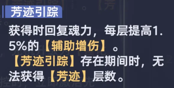 接着稍微有点复杂的3被动来了,这个被动最大的特点就是需要通过积累“芳迹”状态来触发“芳迹引踪”效果,而触发的条件则是靠近“幽香绮罗”即可。