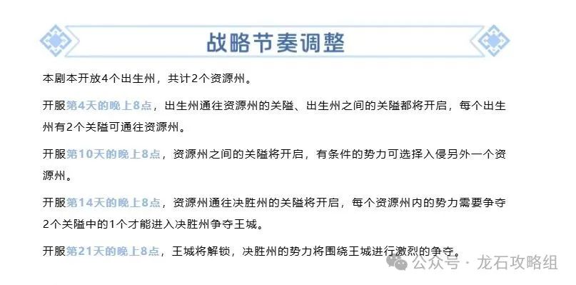 2、战略节奏节点改动提前,整个赛季节奏加快(24天一个赛季),意味资源升级(采矿)+城池攻占升级(加快打城节奏),提升整体PVP节奏速度