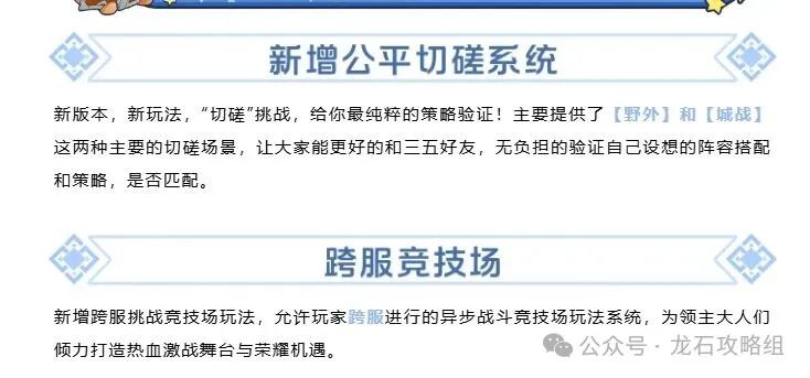 2. 跨服竞技场,增加游戏性+多发奖励(个人推测类似全区排名的荣耀竞技场)