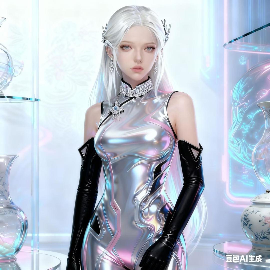 关键词:3Dtoy,oc渲染,中式美学,国风,动态优美,面部特写,透明般的皮肤,干净无暇的皮肤,银色金属质感,金属流体,旗袍服饰,液态金属,水银质感,精美的饰品,高冷,圣洁,神圣,简洁的背景,赛博风,未来感,意识流,朦胧,科幻,玻璃质感,瓷制感,超现实主义,压抑,压迫感,银色金属质感,低饱和,氛围感,杰作,明亮,极简风,怪诞,梦核,高级,伦勃朗光,朦胧美,粉色,青花瓷