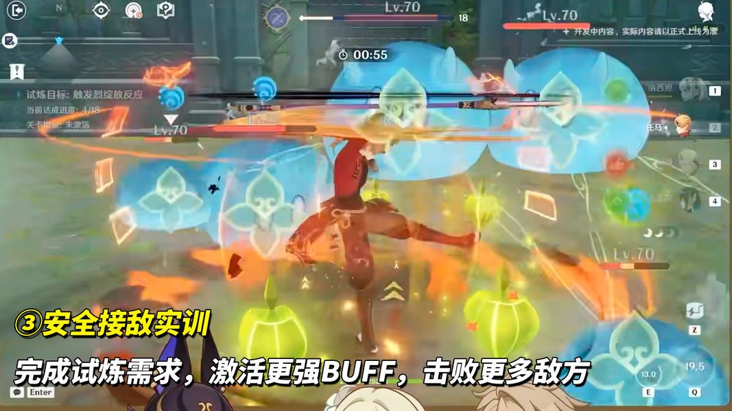 ③安全接敌实训,战斗玩法,完成试炼激活增益战胜敌人赢取高分。