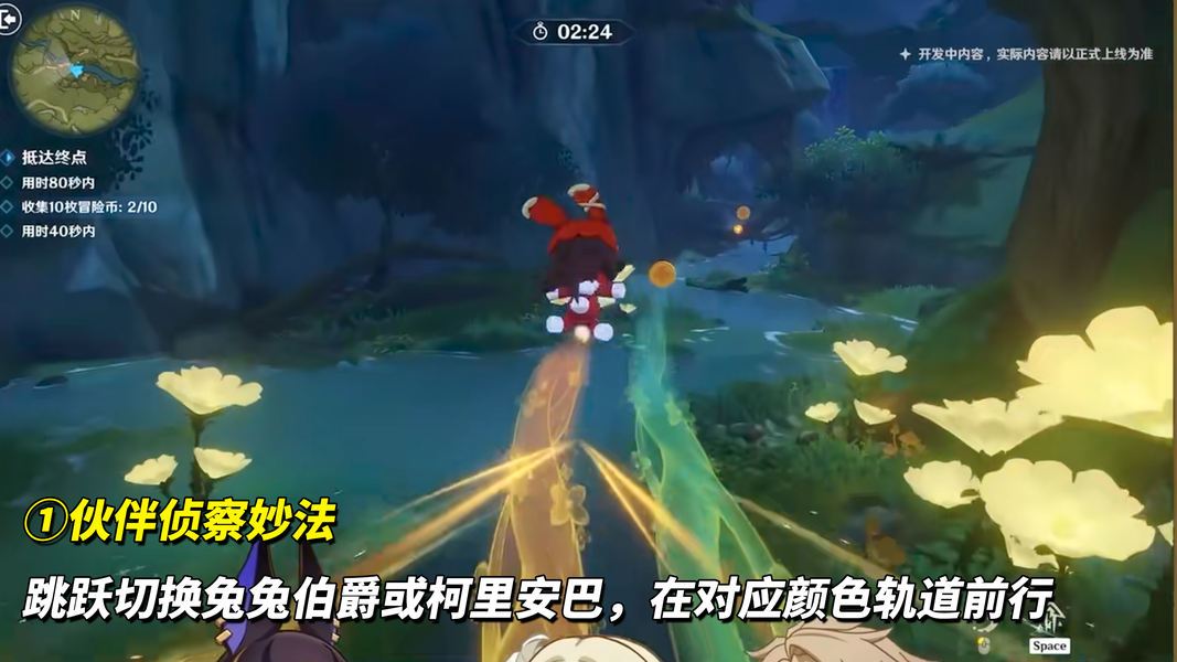 除剧情外,活动还带有3个小游戏玩法:①伙伴侦察妙法,操控切换兔兔伯爵与柯里安巴,在不同颜色的轨道上前行;