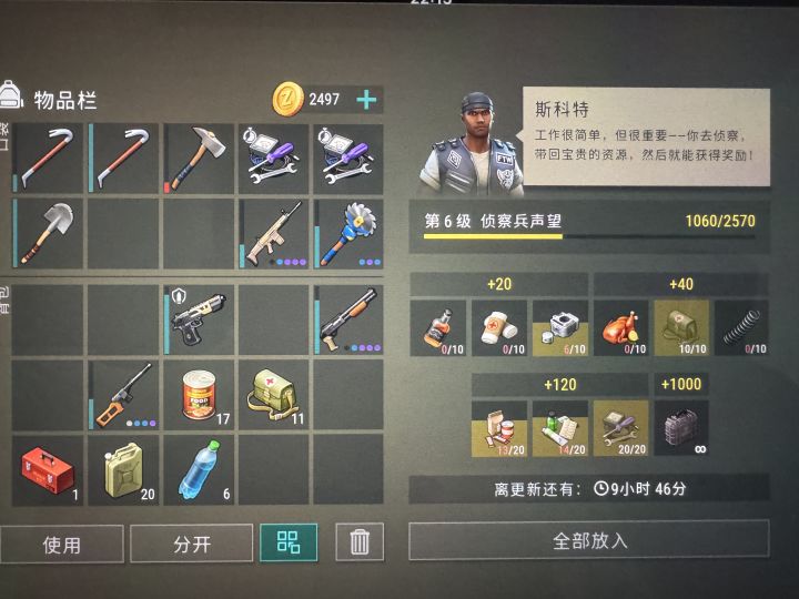 准备:1锯子(背刺) 3近战 2撬棍 1斧头 20急救包 1组食物 1喷子 3枪 2套衣服 5晶体管(不去前哨战则不带)