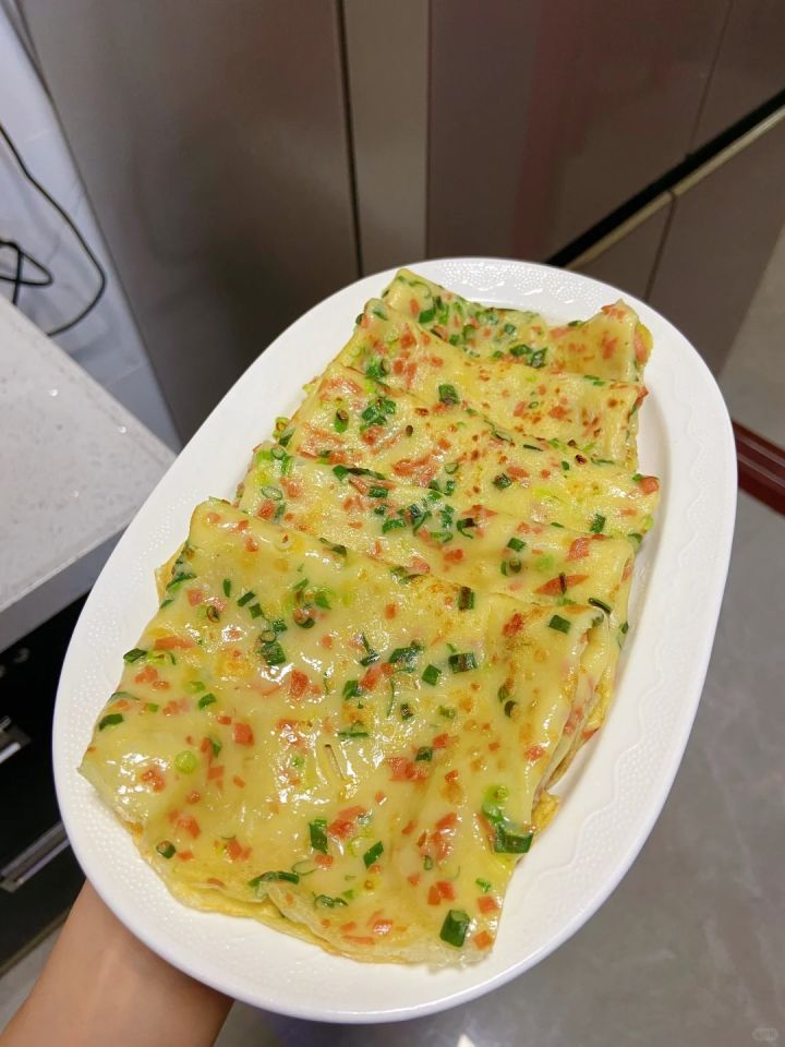 葱花火腿鸡蛋软饼 十分钟快手早餐 超简单