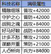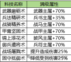 A5:加的是二阶神武科技的效果百分比。举例:二阶科技的厉兵秣马满级提供28000战攻、三阶的战驹之魂100级提供300%属性,那三阶的战驹之魂提供的属性就是28000*3=84000战攻。