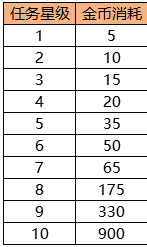 立即完成诏令功能消耗金币数量如下表: