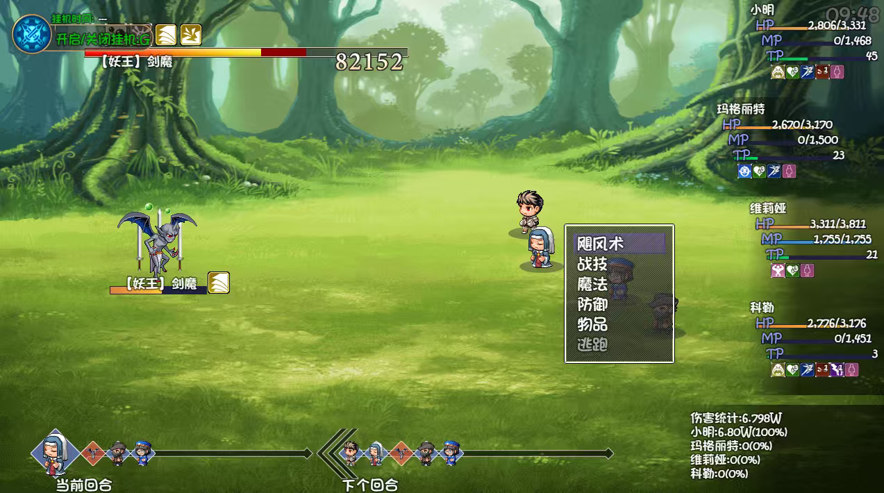 到这里战力就有了,没有奶妈可以做点药,一人喂药三人放技能,推主线和金法杖任务,法杖给奶妈拿上。