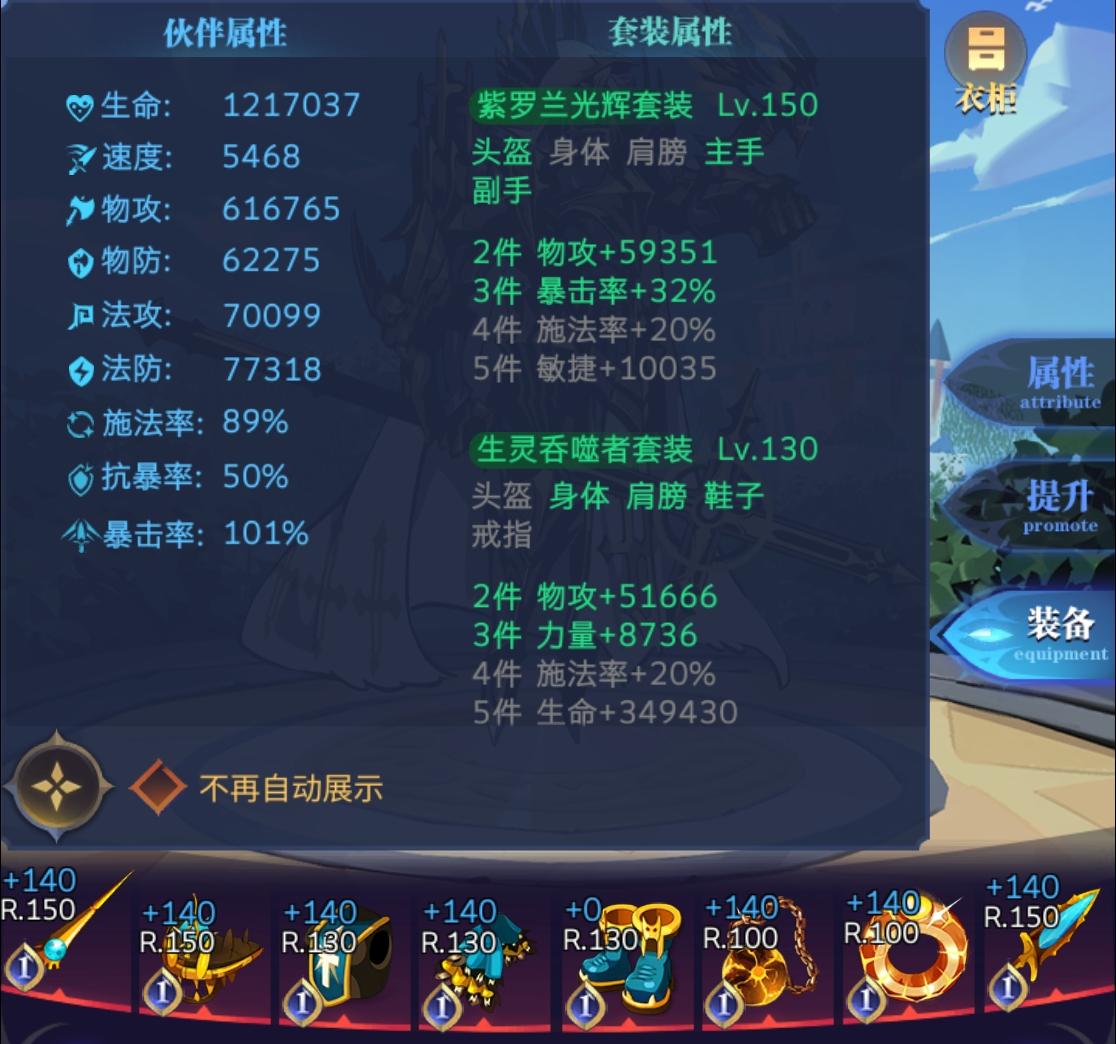 这是因为主线挂机不会实时检测你的角色属性变化,因此给所罗门换了高攻击装备,测试能不能一刀一个时,需要下阵所罗门然后再上阵以刷新数据。