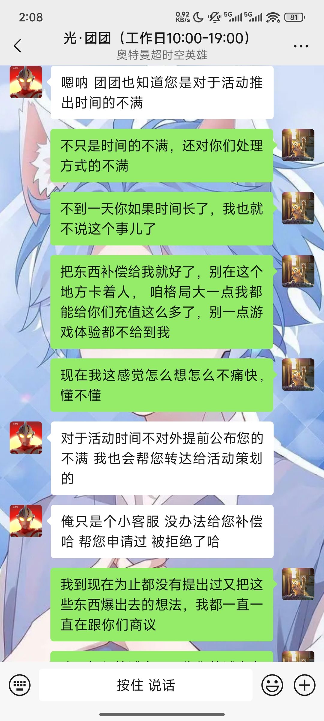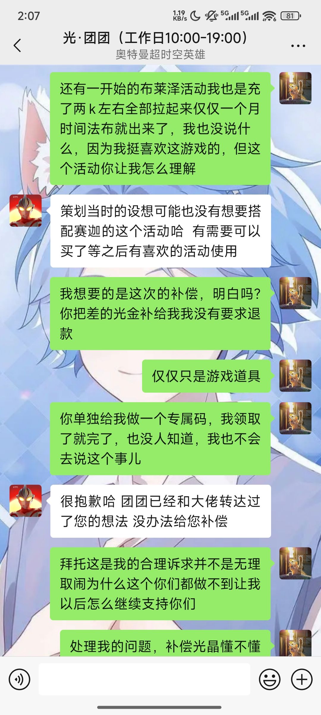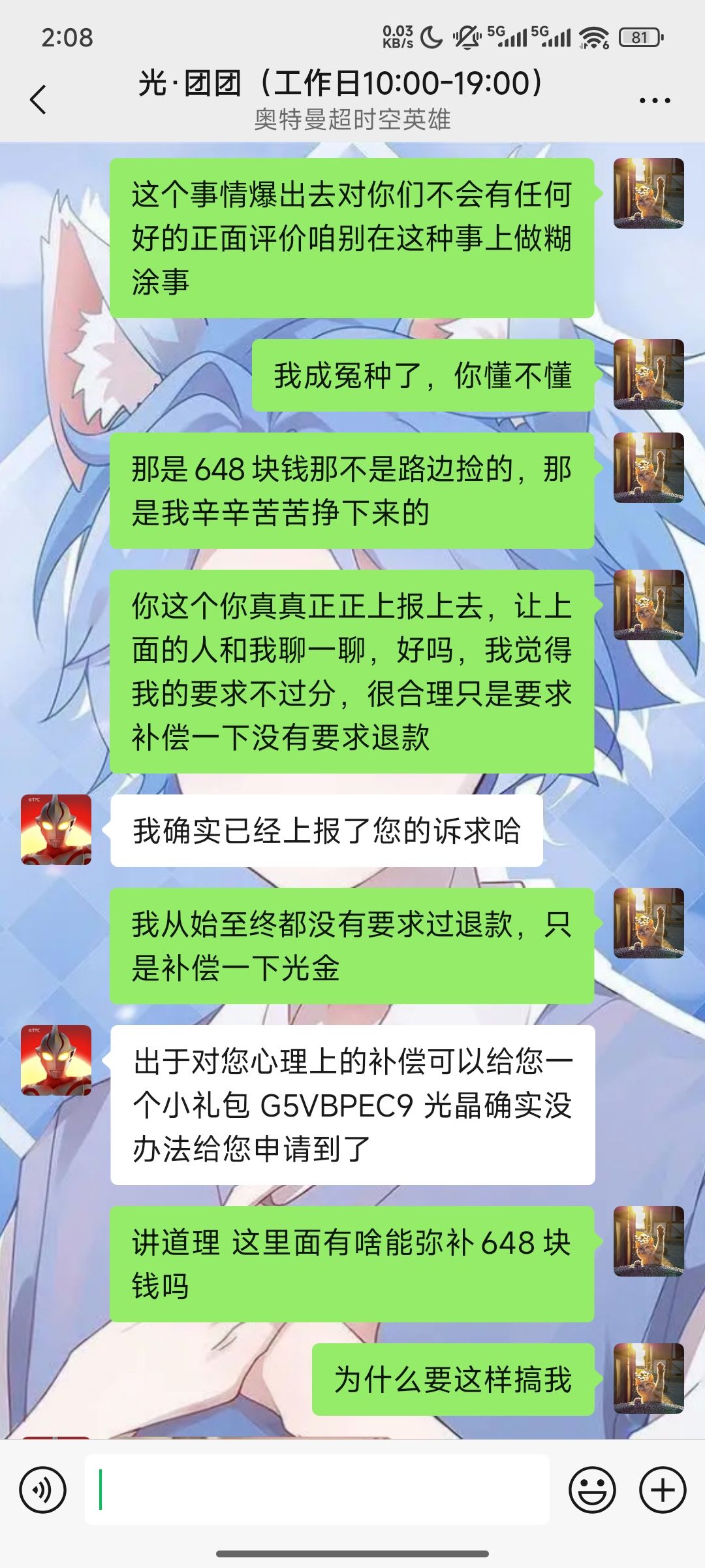昨天下午充值648,今天弹出个双倍648,最可气的是中午问有什么活动啥也不说,到现在口口声声说没有造成损失不予补偿,人言否