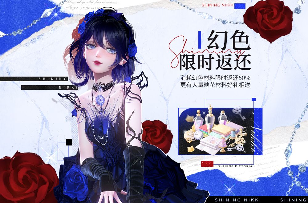 活动期间,消耗幻色材料完成幻色,限时返还50%幻色材料,更有闪耀高级映花材料自选礼包和非凡高级映花材料自选礼包相送。