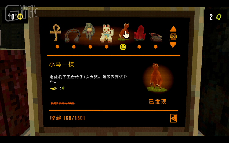 在将金币投入老虎机前,玩家可以选择用四叶草券购买一些“护符”,也就是道具。这些护符有着不同的功能,可以带来加成。比如,如果你买下“猫粮”,每回合可以多转两次老虎机;当拥有了“小马”,下次转动老虎机的时候,必会有一次转出“大奖”图形。