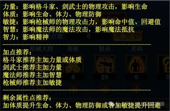 游戏里有力量、体质、敏捷这些属性,对枪械师来说,敏捷就是命根子。这个属性不仅加攻击力,还直接关系到命中率和闪避,三点都戳在枪械师的痛处。我建议主加敏捷,把这属性点满再说。要是觉着自己太脆,容易在战场上“光荣”了,那就分点属性给体质,加点血和防御。活着才有输出,这个道理在哪个战场都适用。