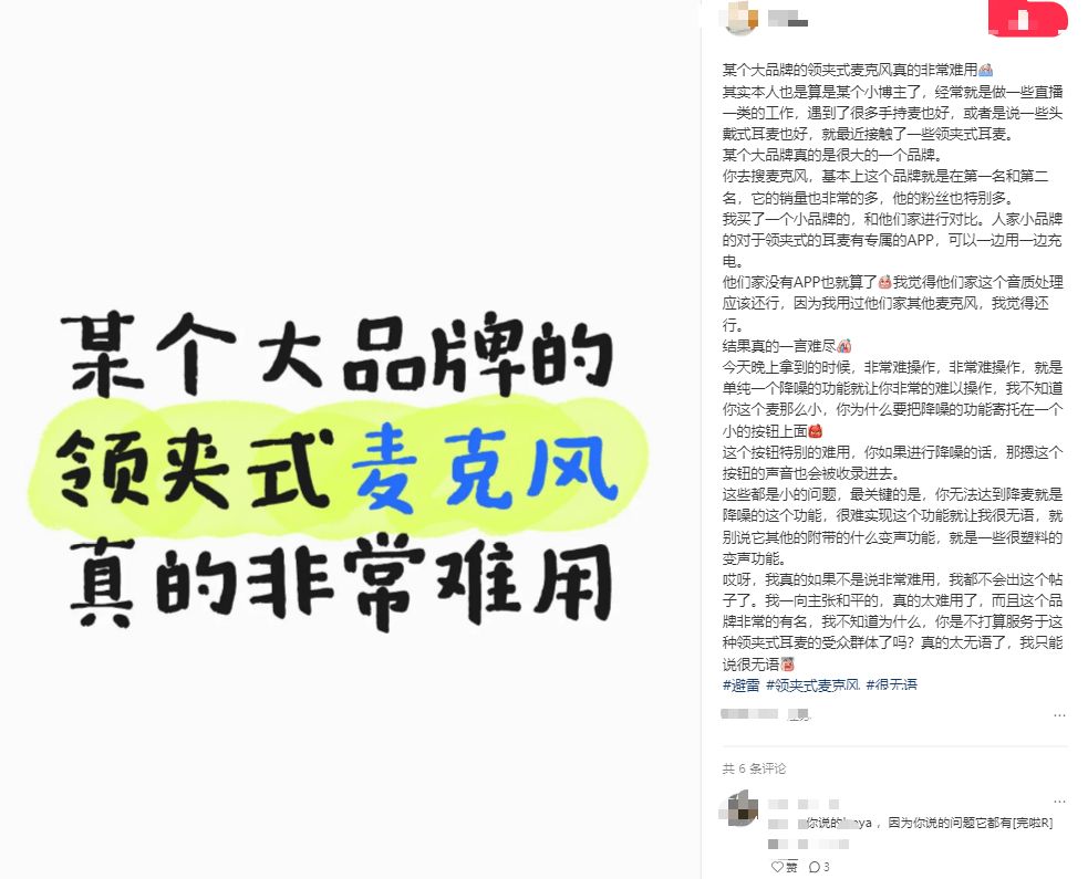 作为一名长期从事视频创作、线上课程录制和直播的内容创作者,我深知领夹麦克风对录音质量的重要性。然而,目前市面上的领夹麦克风参差不齐:不少产品参数看似惊人,价格也很吸引人,但实际使用中却常让人失望——收音闷、糊或者带杂音;无线传输不稳,容易掉线;降噪效果有限,风声和环境噪音明显;操作复杂,频繁调节影响录音流程;口播或喊话时还可能出现刺耳爆音,严重影响作品成片效果。