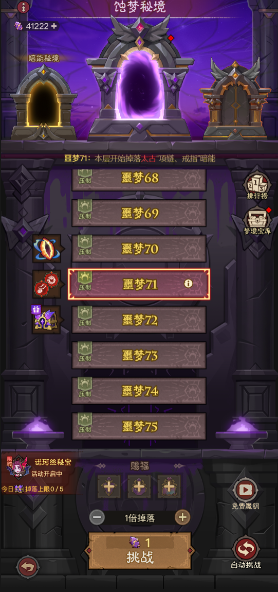 2.每日挑战蚀梦秘境特定层数,均有几率掉落蚀梦金箱、蚀梦银箱,其中蚀梦金箱每日掉落次数不超过5次。