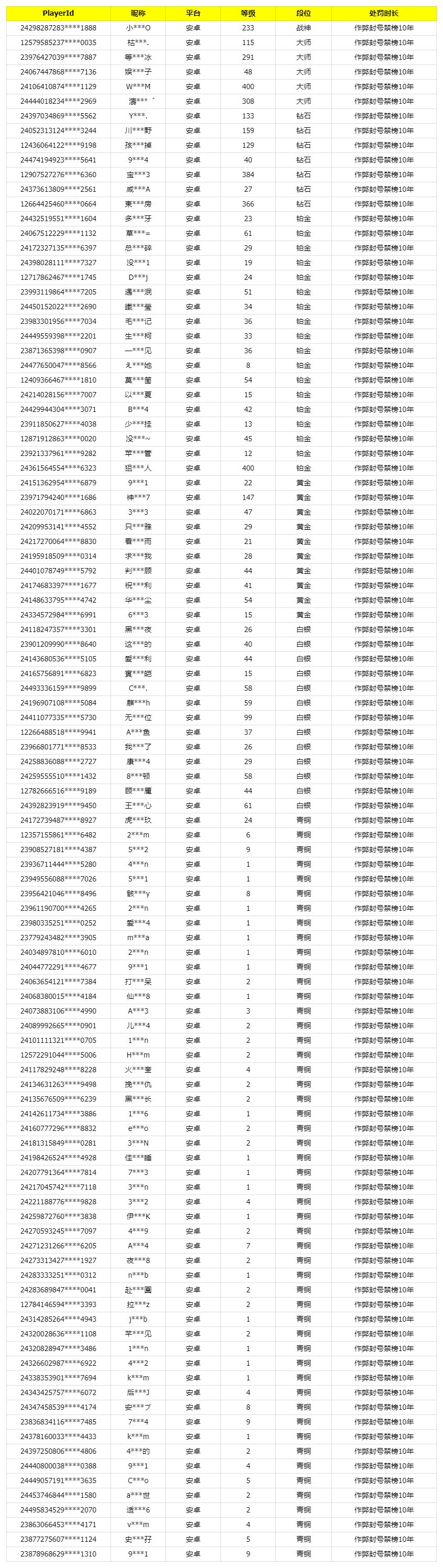 我是瘦普,最新外挂处罚公告来了。