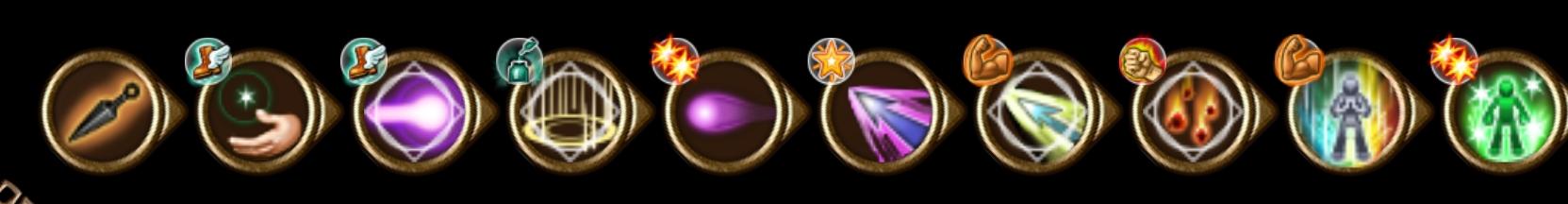 苦无-补位帝王之光-增幅长枪(对暗)/–灵魂护盾(帝王有延迟,需要塞一个技能拖一下时间)–增幅冲击波(对无)(或者不塞连击,苦无-补位帝王-增幅终结然后用冲击波爆能连去触发帝王,冲击波触发之后爆能也能吃到衰弱)(如果怕控反就再丢一次帝王也能触发无属性衰弱)