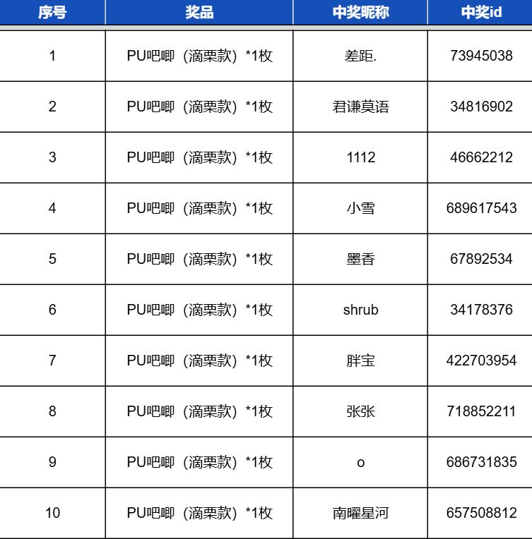 感谢大家的积极参与!恭喜以下玩家获得奖励。