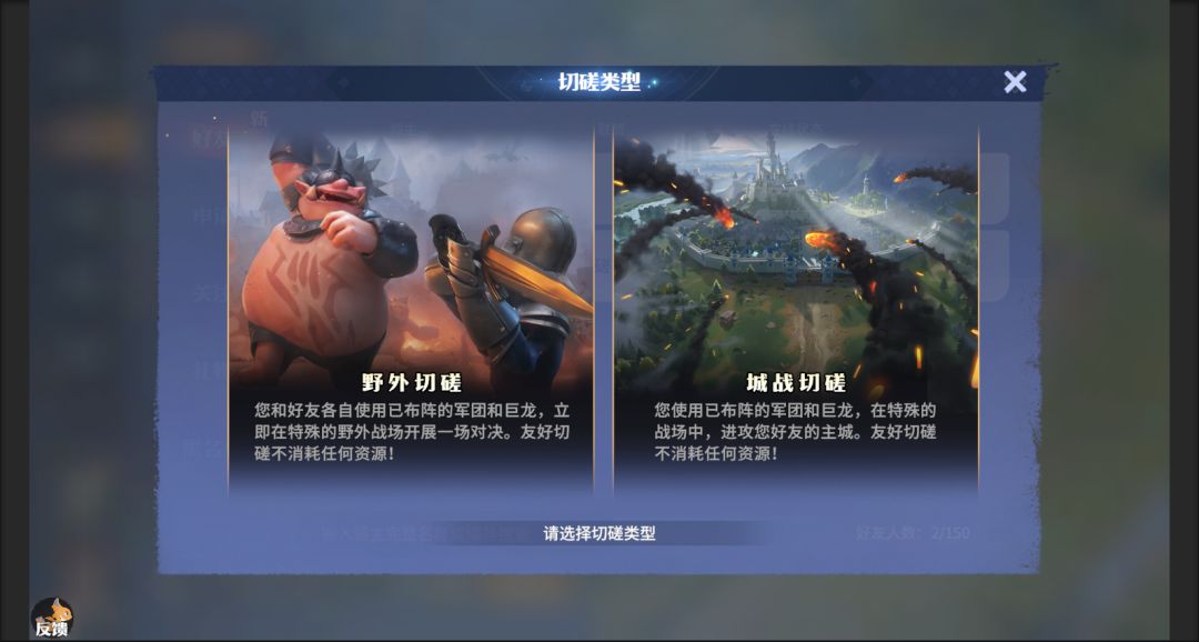 4、切磋发起时可选择切磋场景为【军团战】或者【主城战】。