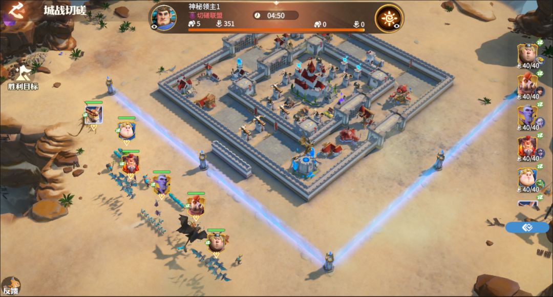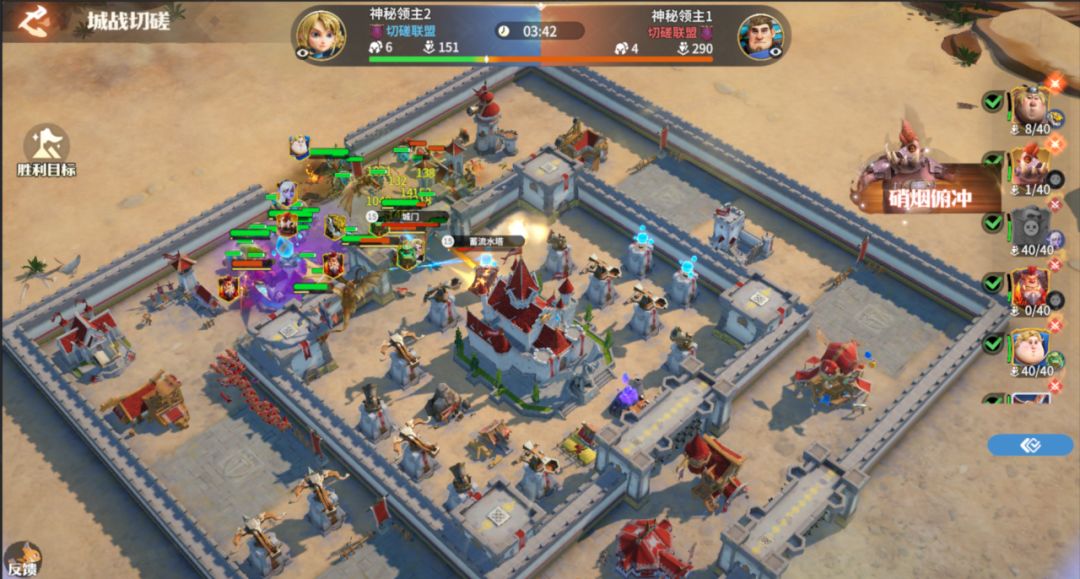 选【主城战】场景发起切磋挑战后,将模拟城市攻防的场景,依据对手当前主城布局与军团布局进行主城战斗,打掉对手主堡将获得胜利。战斗将在副本地图中进行,操作方式与主城攻防战活动一致,战斗结果将可以查看战报。