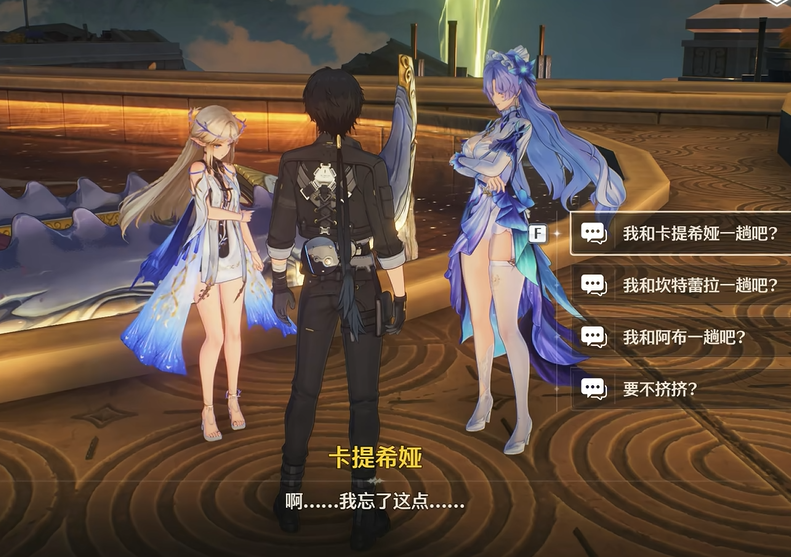 关于漂子卡提希娅也是占有欲极深,2.0刚来黎那汐塔通关狂欢节刚跳完舞就主动把阿漂引来,明明很会跳却让阿漂教她跳舞上来就跟阿漂牵手手,跑路留下笨蛋珂莱塔跑来担心阿漂;颠倒塔时需要坐船渡水,卡提希娅提出呼唤她的贡多拉呼姆,坎特蕾拉一看三个人怎么是双人座?小卡回答忘记了,啊我觉得并非,然后把选择权交给阿漂,看阿漂怎么选,水灵灵的望着阿漂说“没事的漂哥哥,你和姐姐先走吧,小卡对这里很熟的,虽然这里有点危险,不过没事的,小卡能照顾好自己的”;