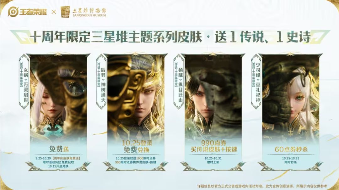 《王者荣耀》十周年三星堆皮肤官宣,可免费获1传说1史诗